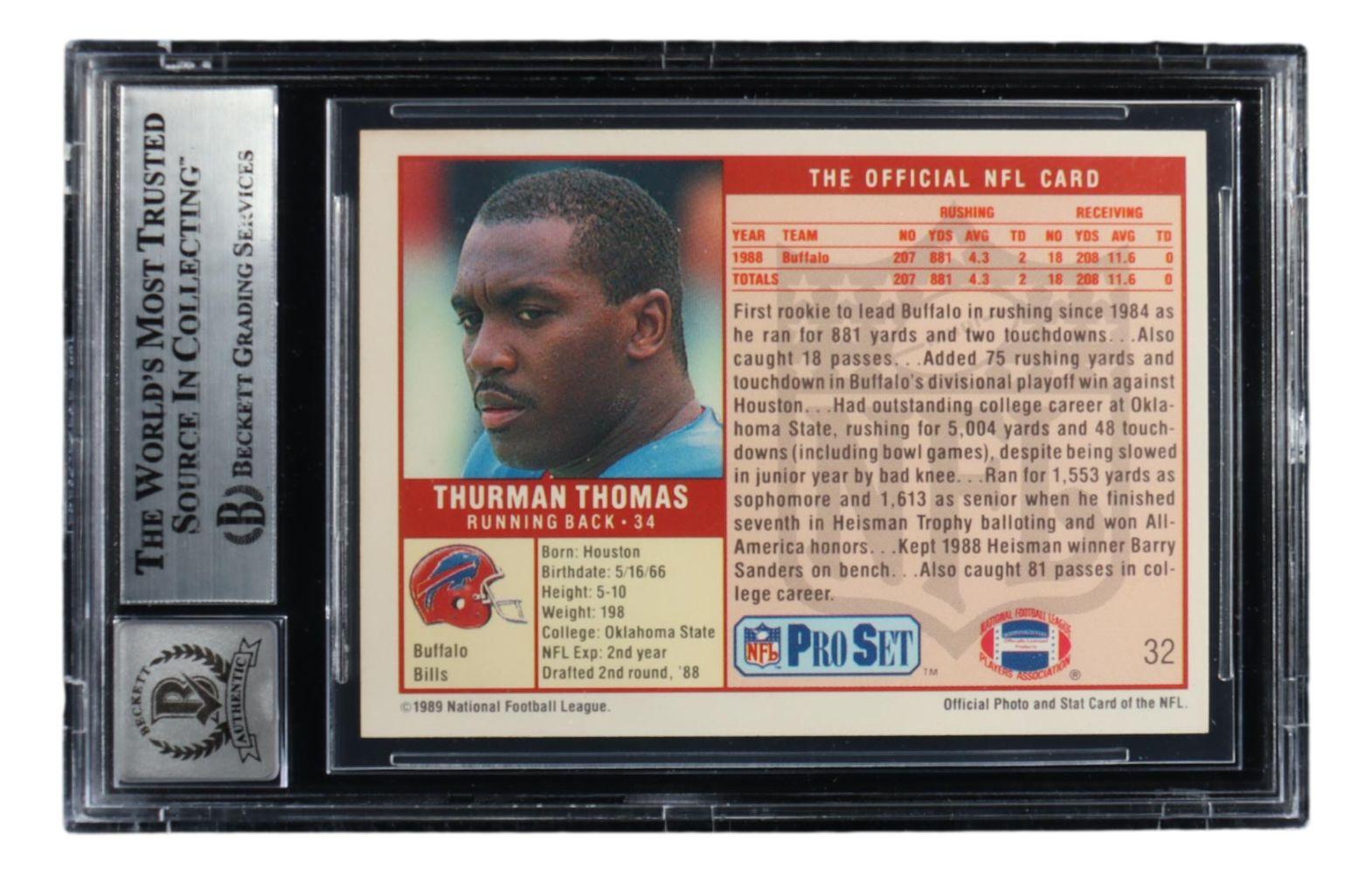 Thurman Thomas Signed 1989 Pro Set #32 RC (BGS | Auto Grade 10)