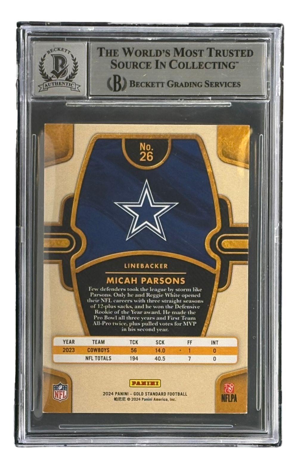 Micah Parsons Signed 2021 Gold Standard #26 RC (BGS 9 | Auto Grade 10)