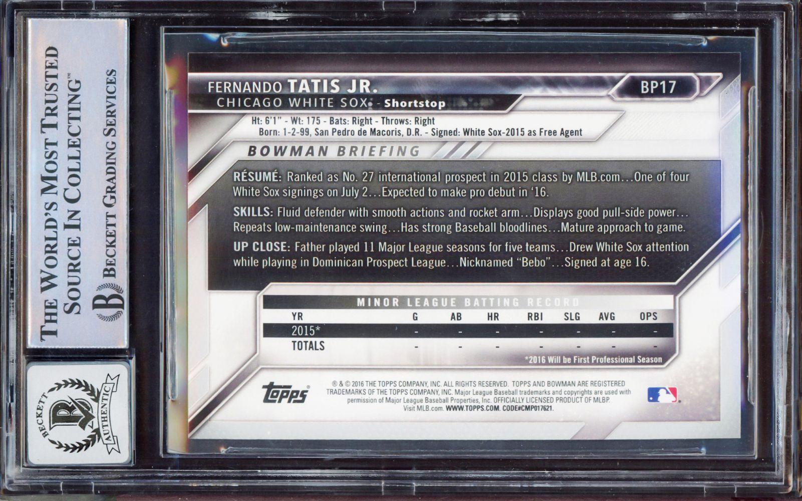 Fernando Tatis Jr. Signed 2016 Bowman Prospects #BP17 RC (BAS 9 | Auto Grade 10)