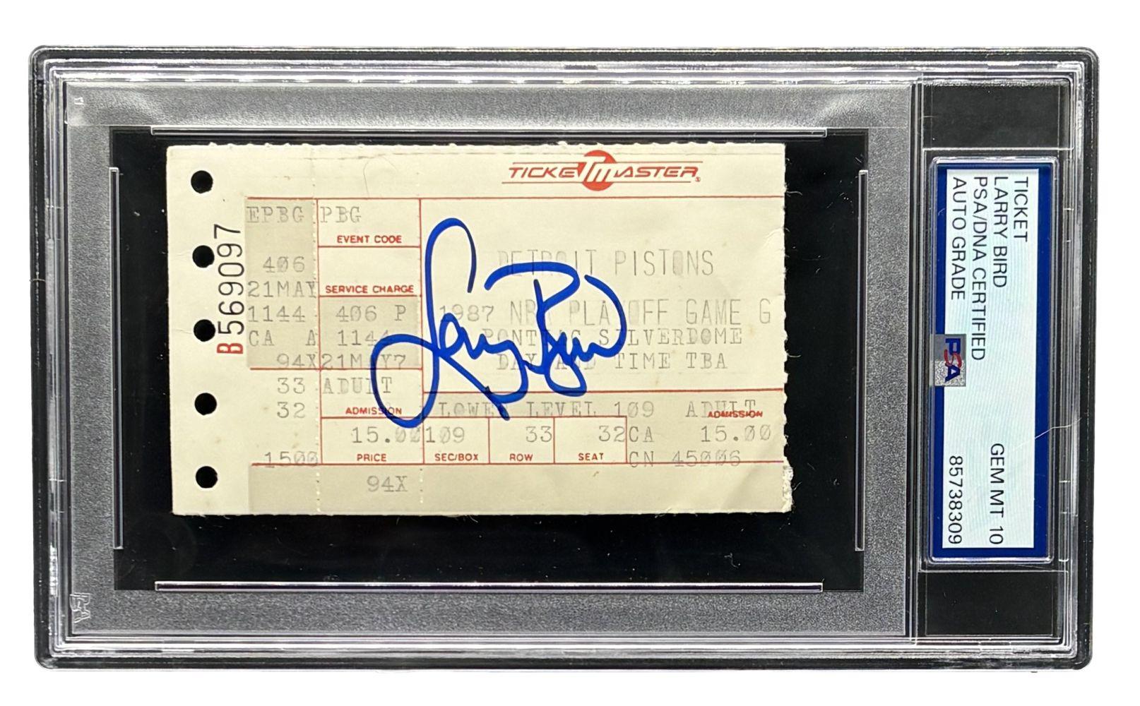 Larry Bird Signed 1987 Celtics vs Pistons Ticket Stub (PSA | Gem MT 10)