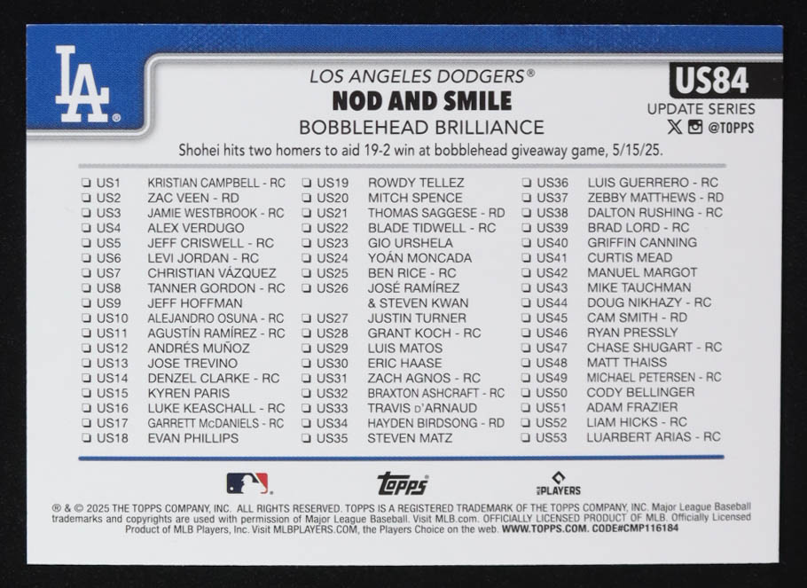 Shohei Ohtani 2025 Topps Update Sandglitter #US84 HL