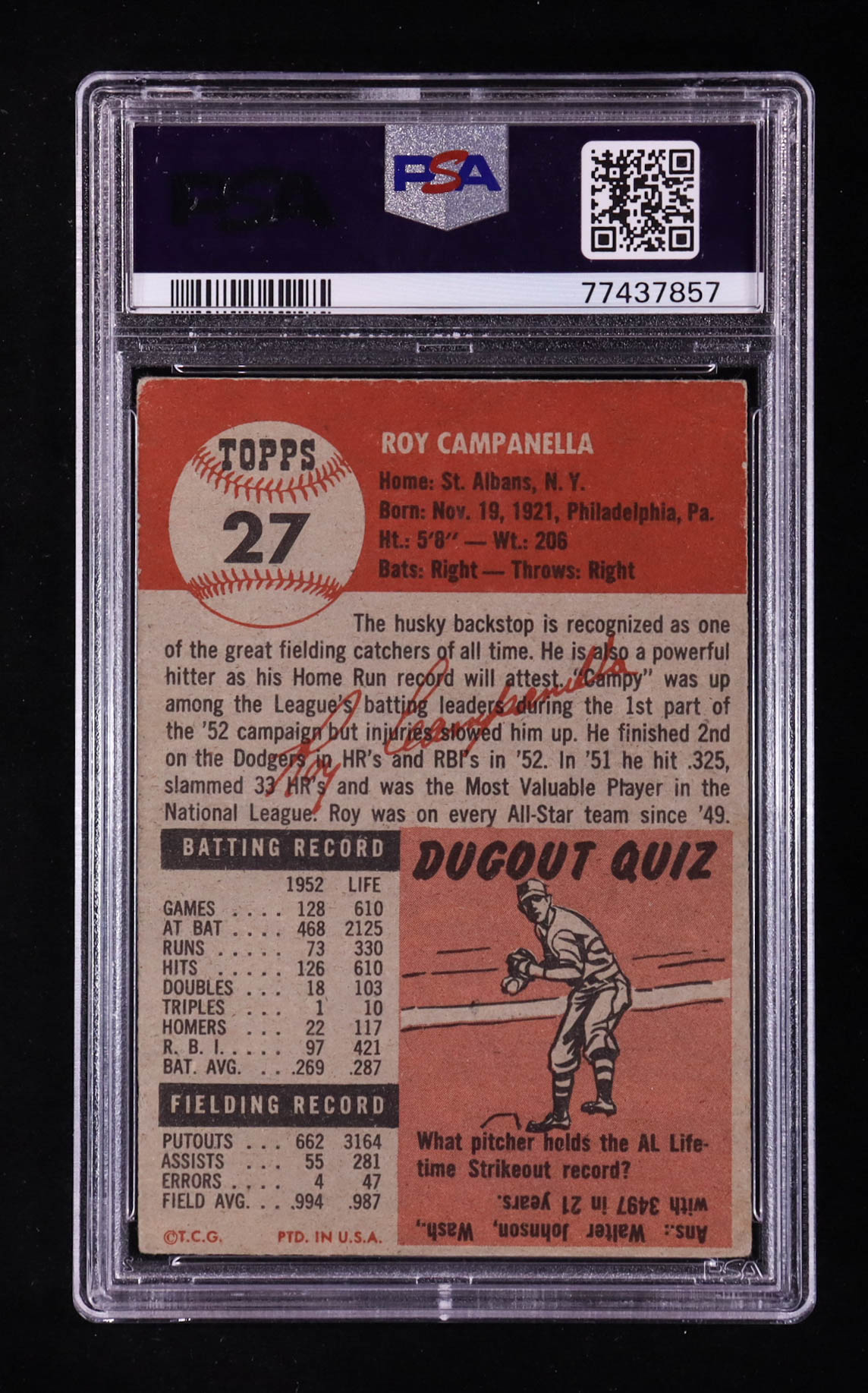 Roy Campanella 1953 Topps #27 DP (PSA 3.5)