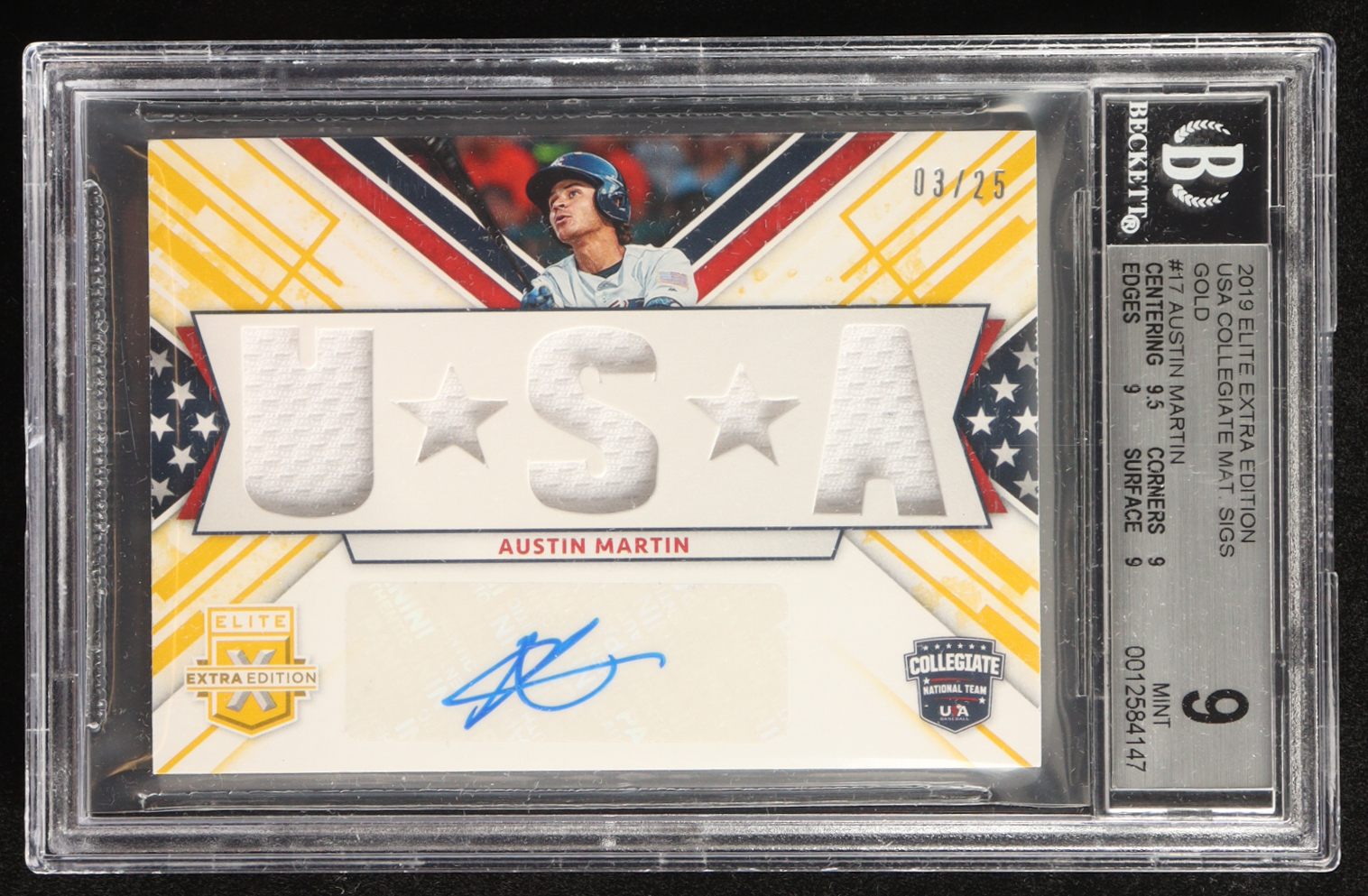 Austin Martin 2019 Elite Extra Edition USA Collegiate Material Signatures Gold #17 #03/25 (BGS 9 | Autograph Grade BGS 10)