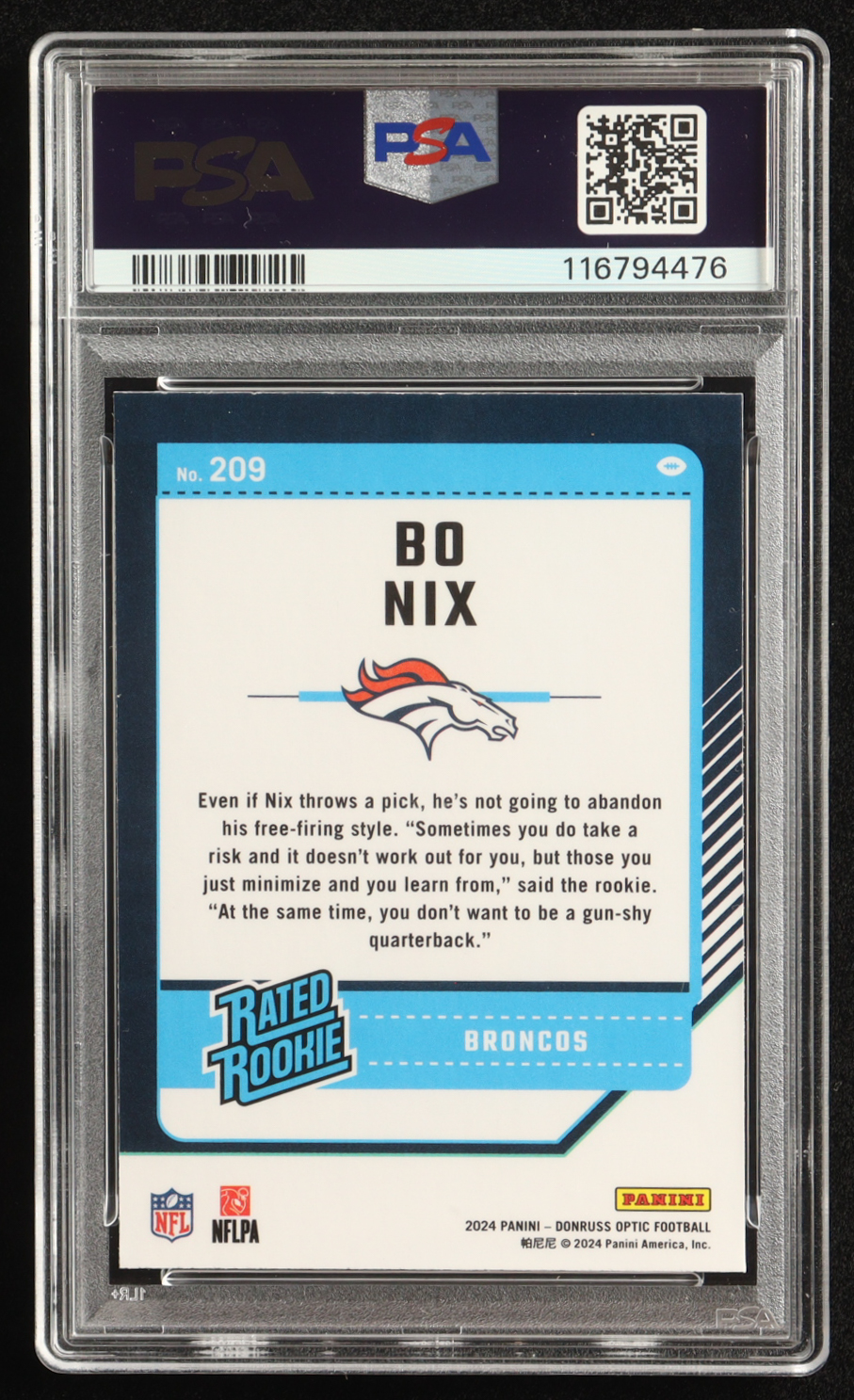 Bo Nix 2024 Panini Donruss Optic RR #209 RC (PSA 9)