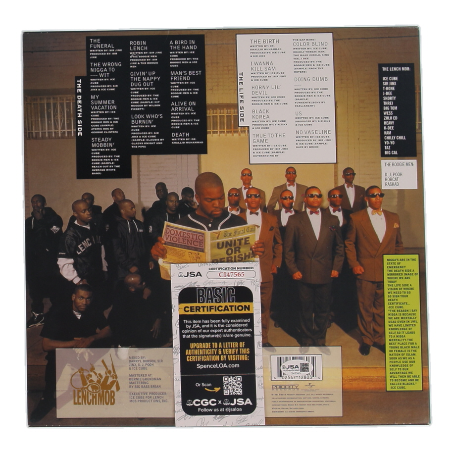 Ice Cube signed "Death Certificate" Vinyl Record Album (JSA)