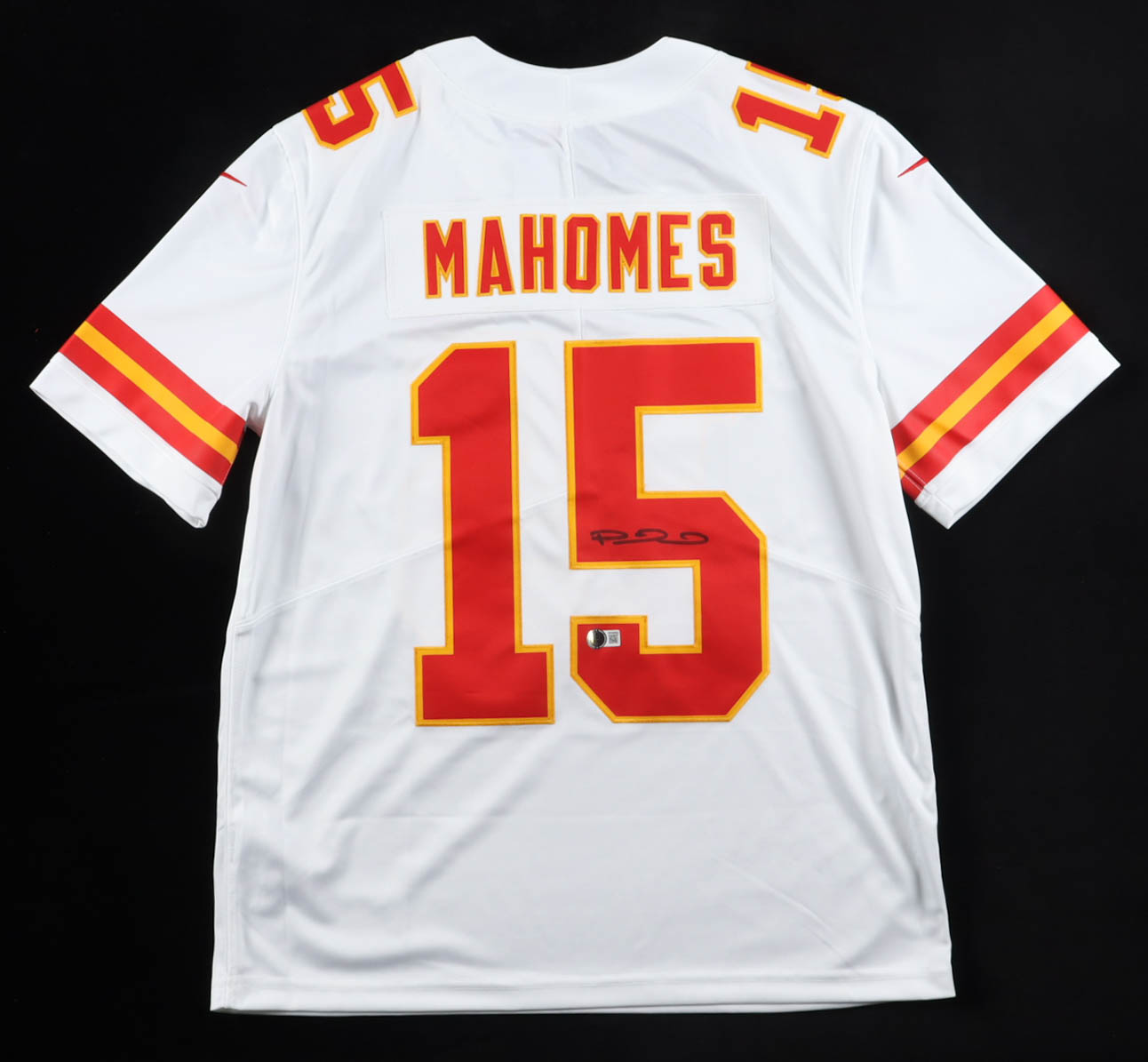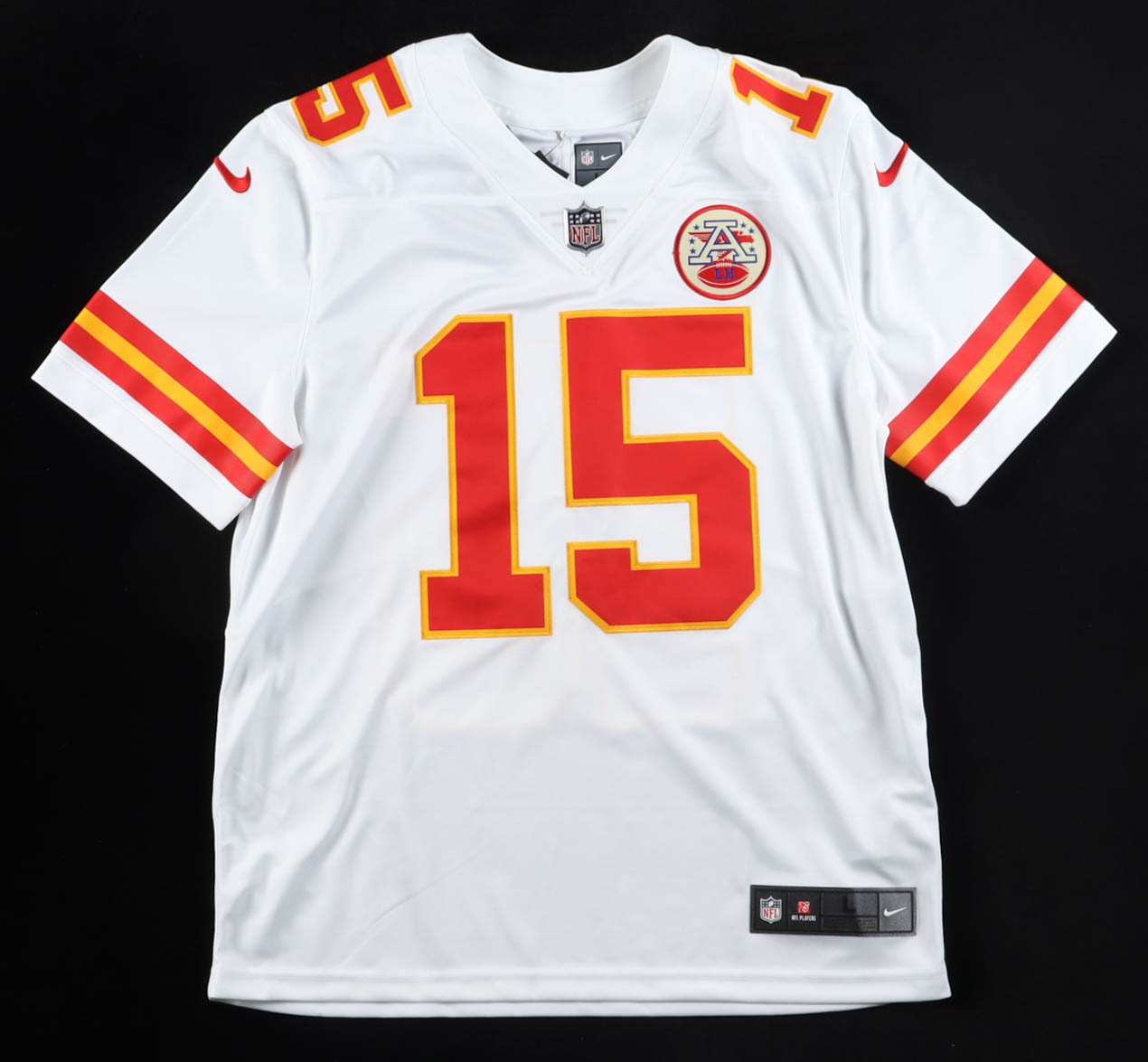 Nike authentic jersey with everything pressed on, size L. Hand-signed by Patrick Mahomes II (Kansas City Chiefs).