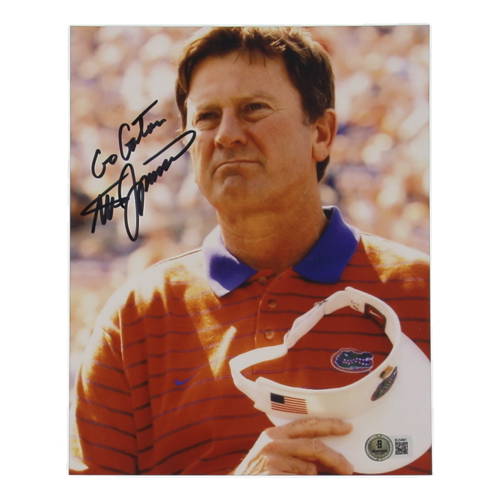 Photo measures approximately 8" x 10" in size. Hand-signed and inscribed by Steve Spurrier.