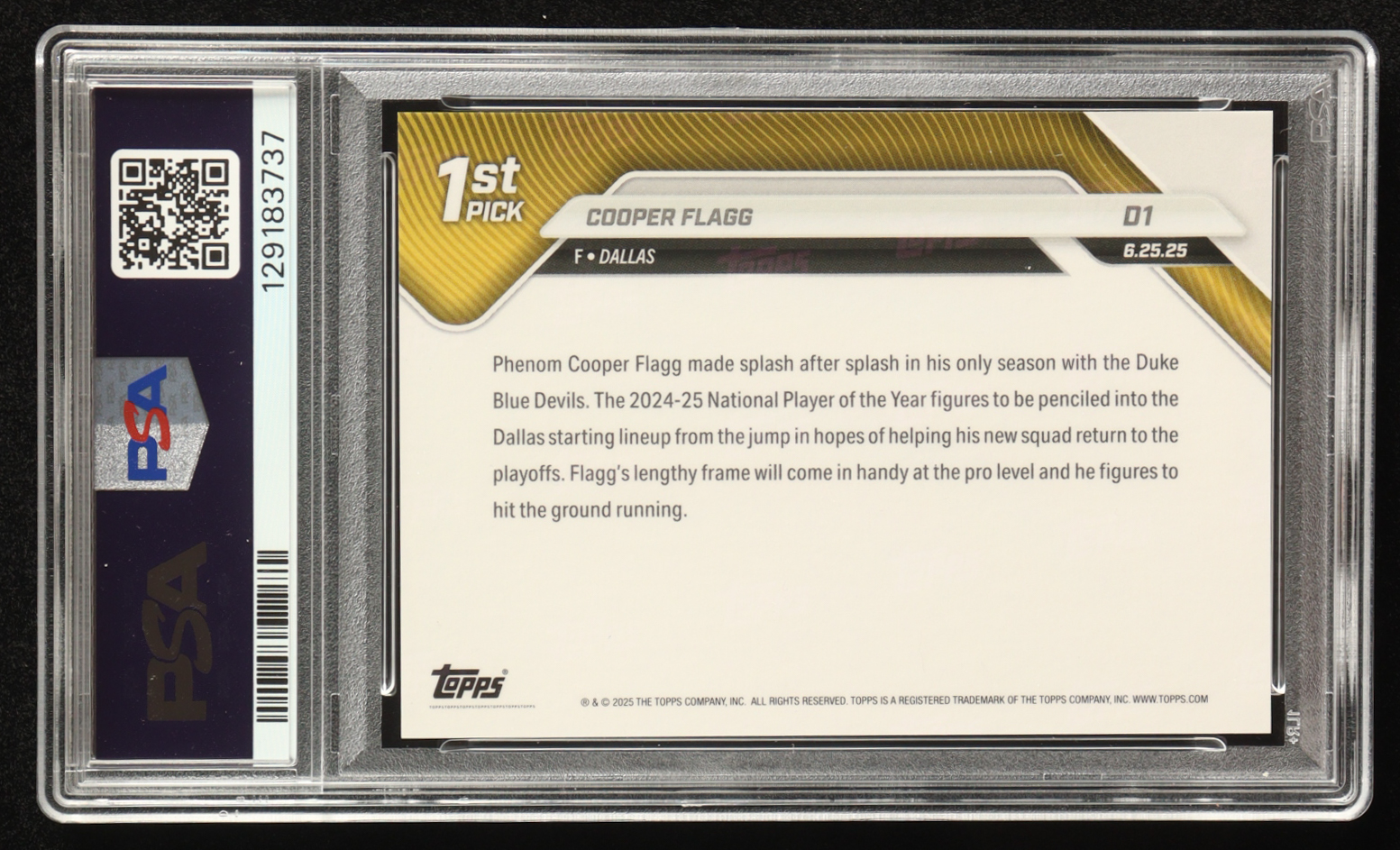 Cooper Flagg 2025 Topps Now Draft #D1 RC (PSA 10)