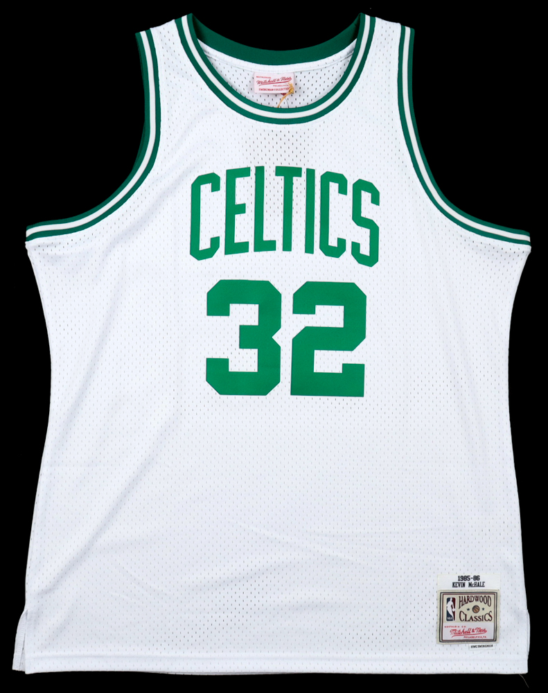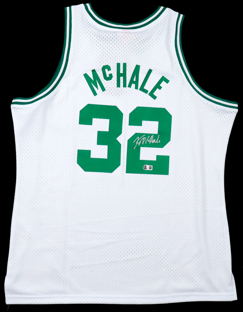 Mitchell & Ness jersey with everything pressed on, size XL. Has been hand-signed by Kevin McHale (Boston Celtics, HOF).