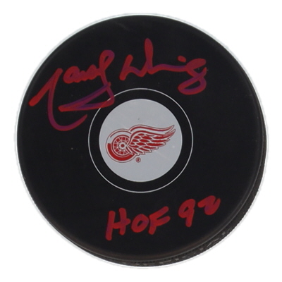 Marcel Dionne Signed Red Wings Logo Hockey Puck Inscribed "HOF 92" (JSA)