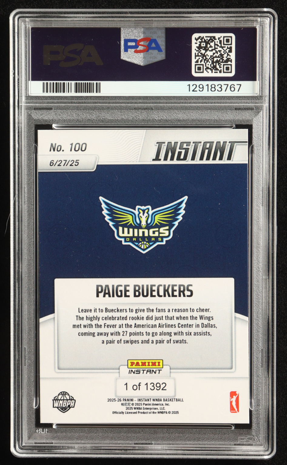 Paige Bueckers 2025 Panini Instant WNBA #100 RC (PSA 10)
