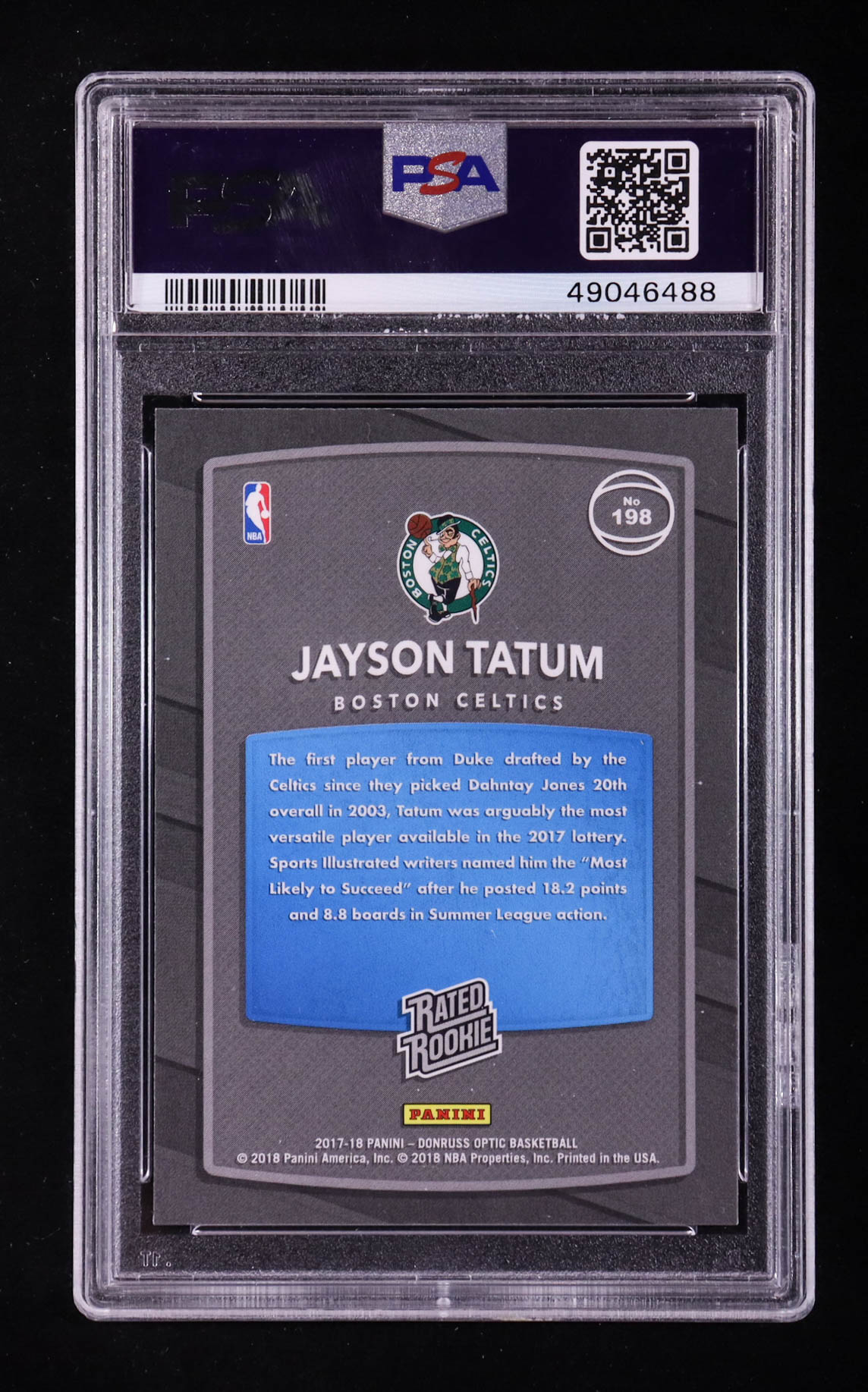 Jayson Tatum 2017-18 Donruss Optic #198 RR RC (PSA 10)