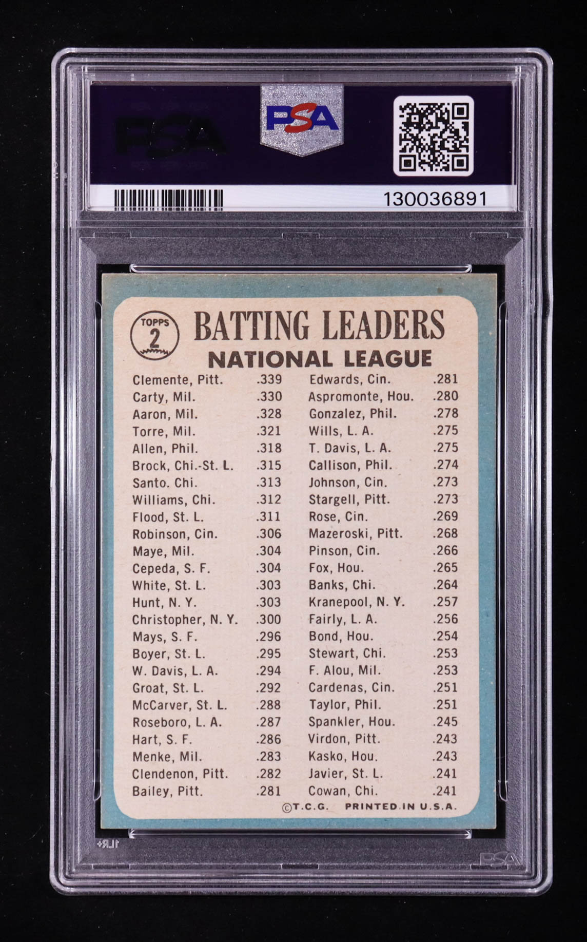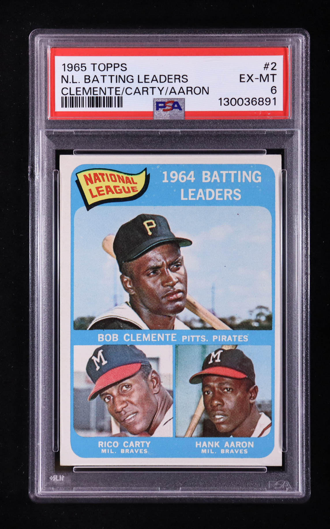 Roberto Clemente / Hank Aaron / Rico Carty 1965 Topps #2 NL Batting Leaders (PSA 6)