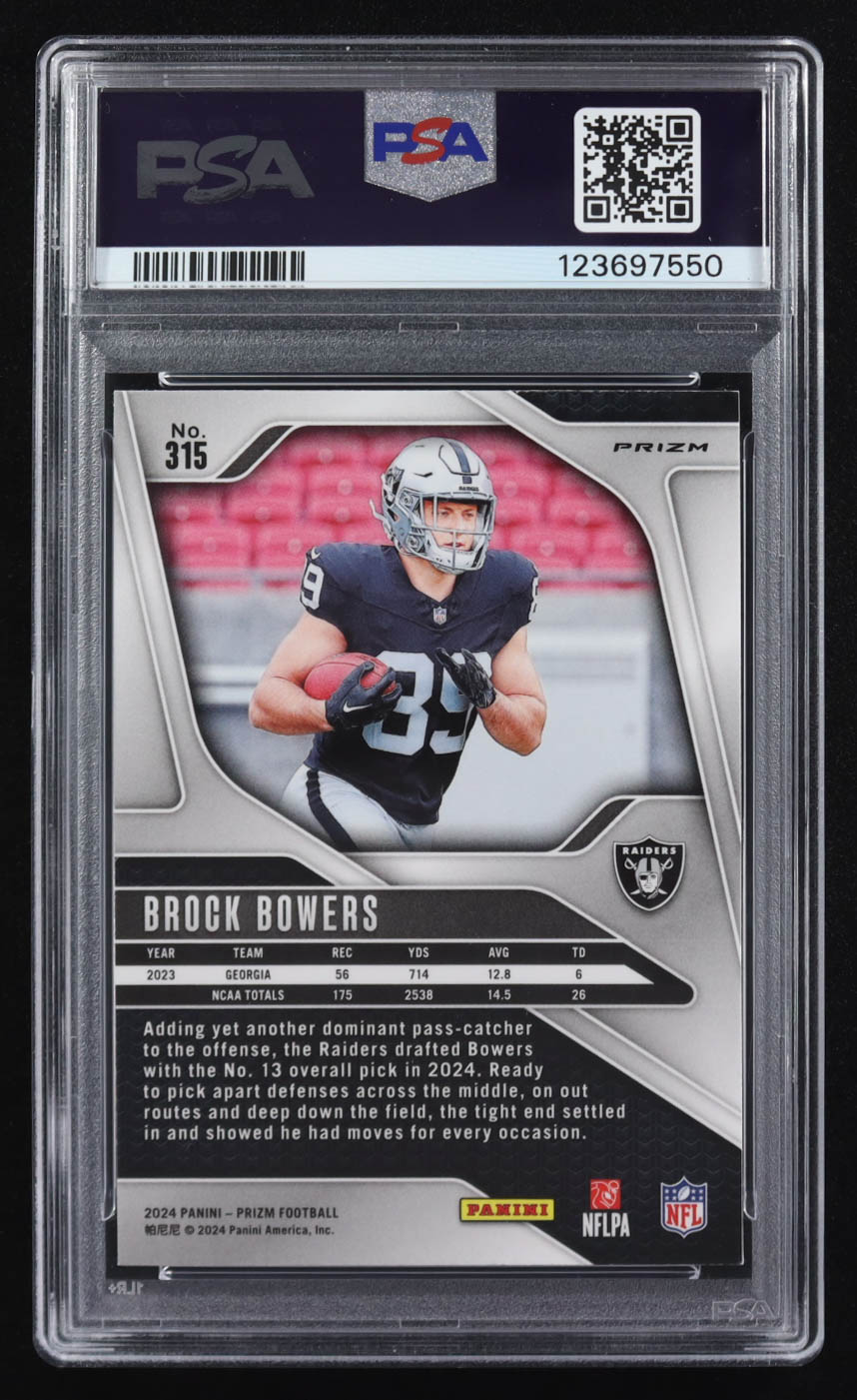 Brock Bowers 2024 Panini Prizm Prizms Silver #315 RC (PSA 10)