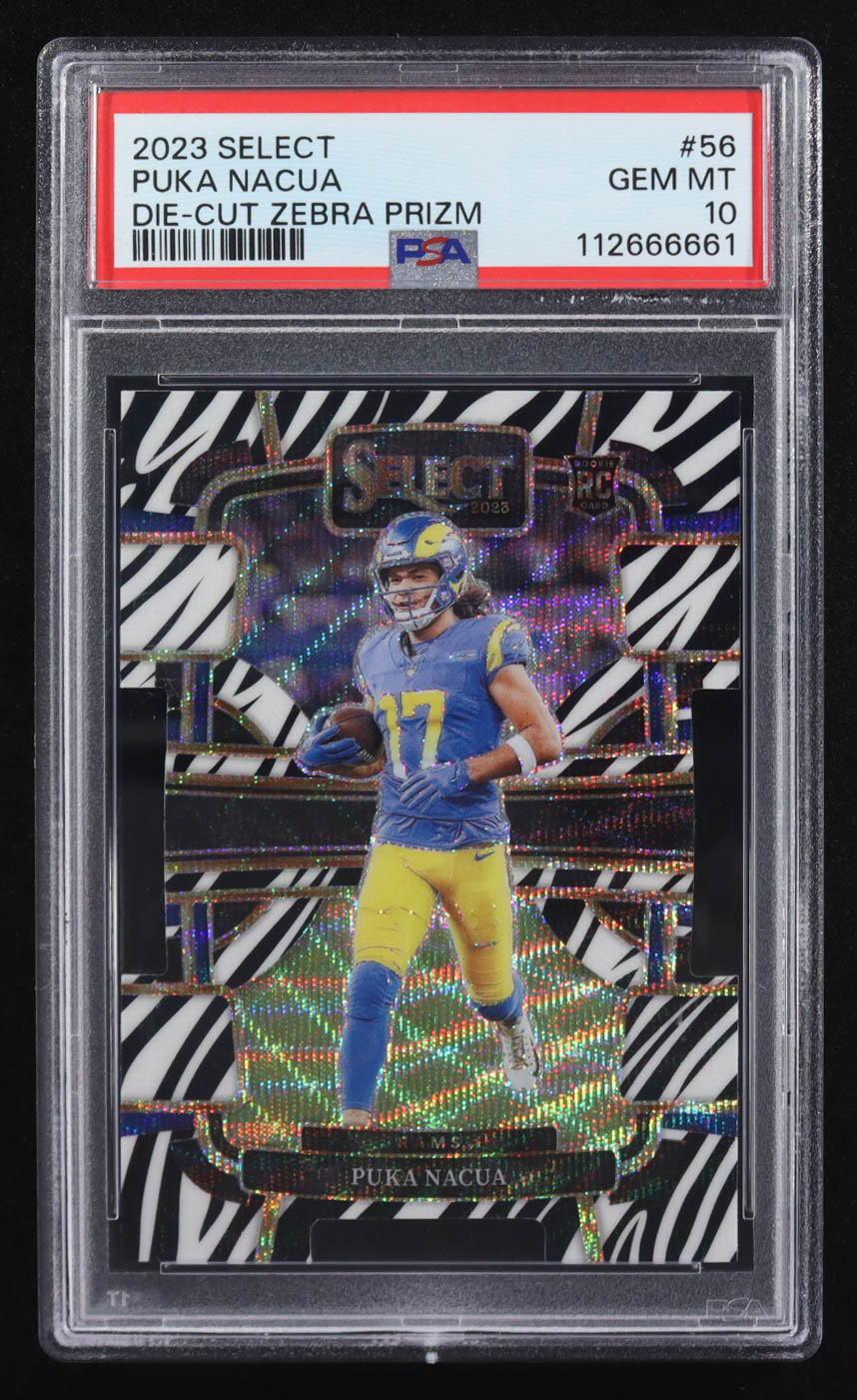 Puka Nacua 2023 Select Prizm Zebra Die Cut #56 RC (PSA 10)