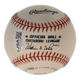 Rawlings Official National League baseball has been hand-signed by Randy Hundley (Chicago Cubs). Please note, the baseball is stained and naturally toned.