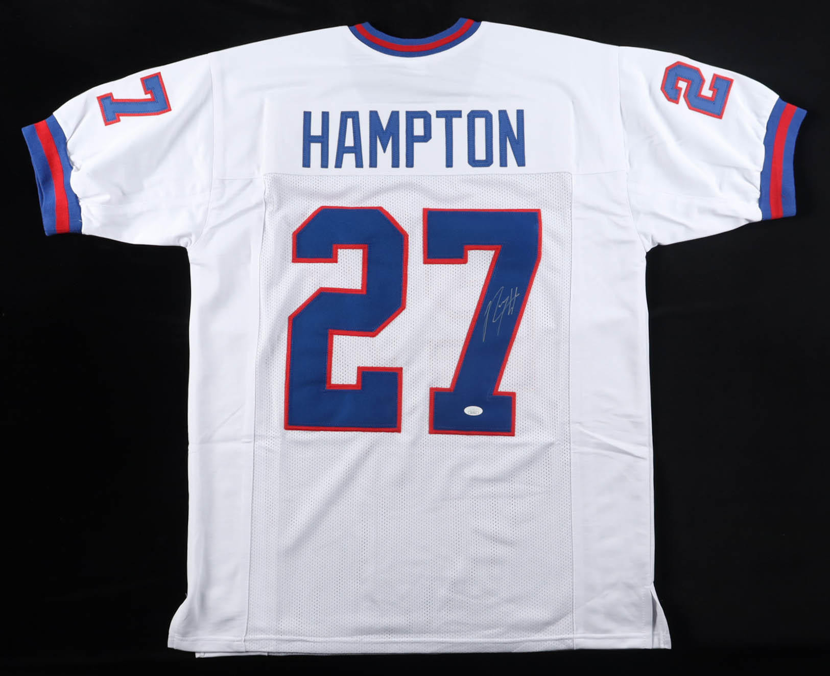 Custom jersey with everything sewn on, size XL. Hand-signed by Rodney Hampton.