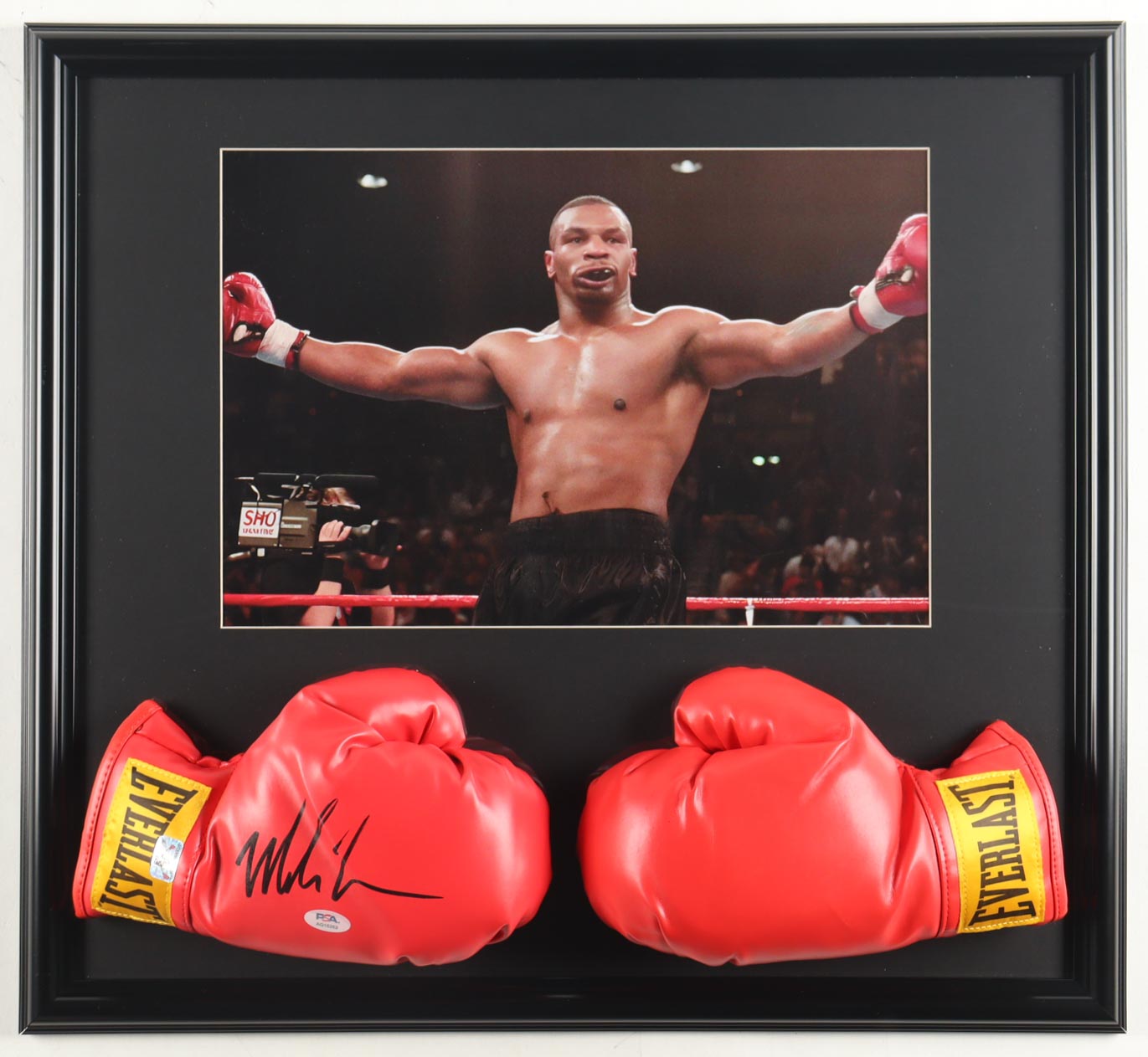 Mike Tyson Signed Custom Framed Set of (2) Everlast Boxing Gloves Display (Tyson & PSA)