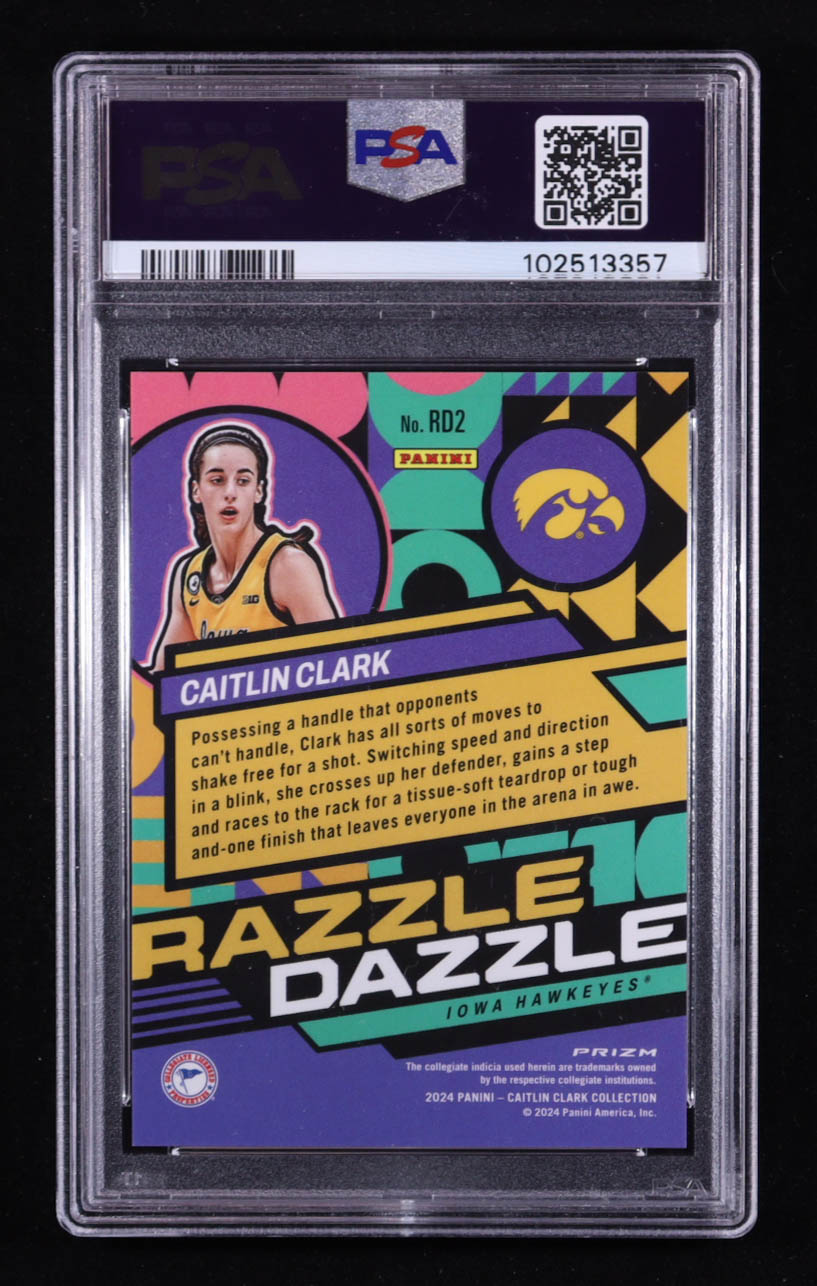 Caitlin Clark 2024 Panini Caitlin Clark Collection Mosaic Razzle Dazzle #RD2 RC (PSA 9)