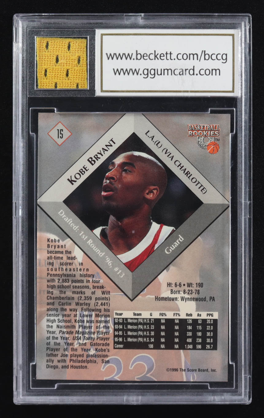 Kobe Bryant 1996 Score Board Rookies #15 RC with Game-Used Rookie Jersey Patch (BCCG 10)