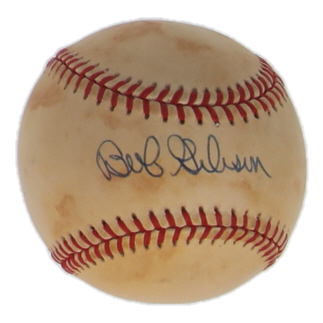 Rawlings Official National League Baseball. Hand-signed by Bob Gibson (D. 2020, St. Louis Cardinals, HOF). Please note, the baseball is naturally toned and stained.