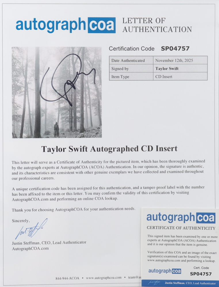 Taylor Swift Signed "Folklore" Custom Matted CD Insert Display (ACOA)
