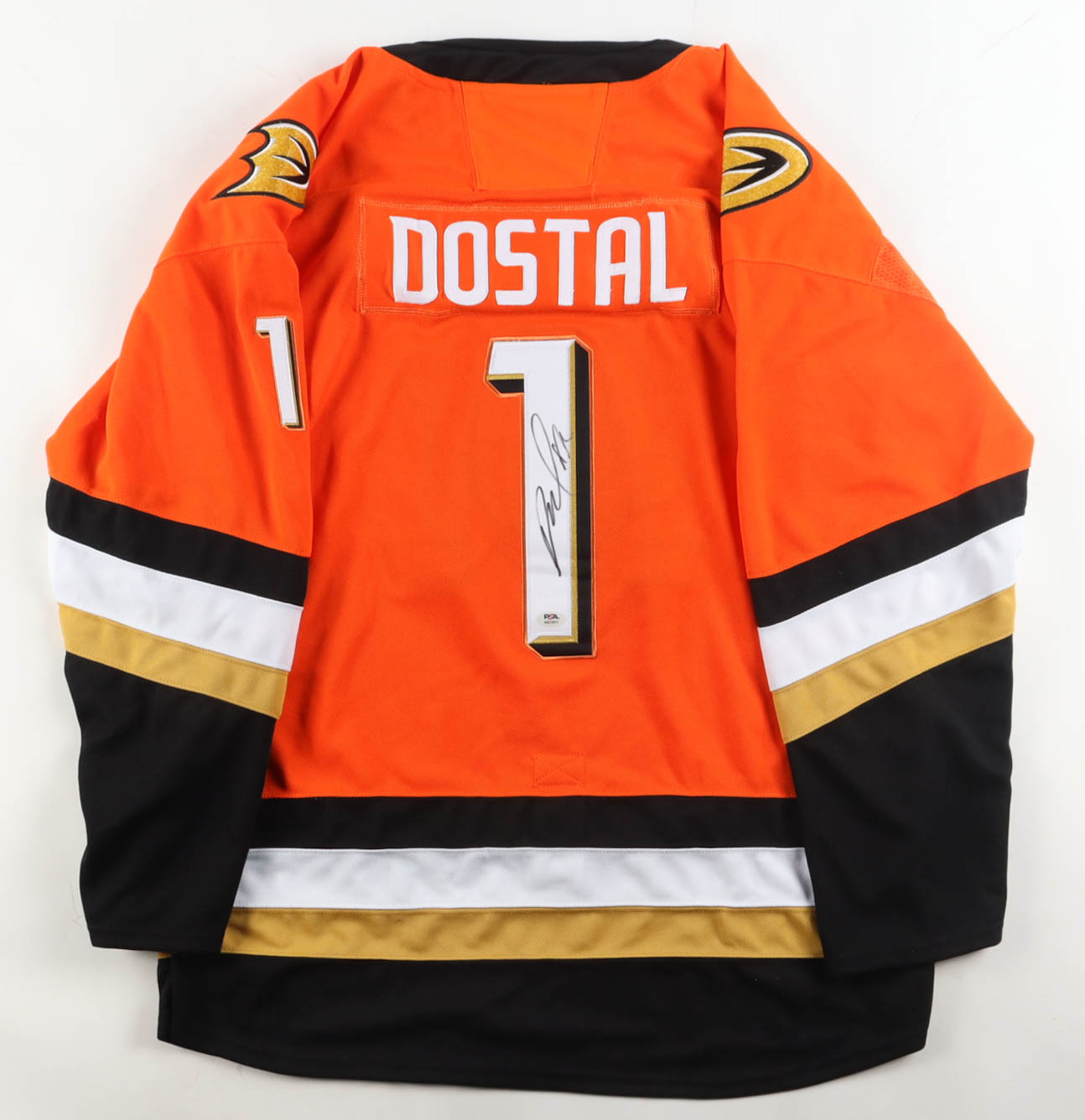Custom jersey. Everything is sewn on, size XL. Hand-signed by Lukas Dostal.