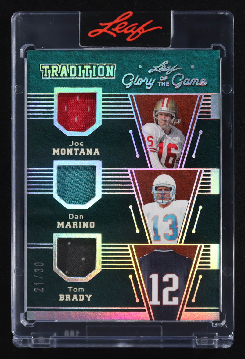 Joe Montana / Dan Marino / Tom Brady 2025 Leaf Tradition Glory of the Game #T9 #21/30