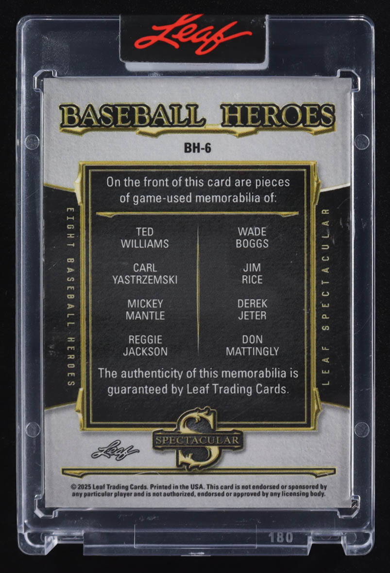 2025 Leaf Spectacular Baseball Heroes Silver #BH6 #11/15 Ted Williams / Wade Boggs / Carl Yastrzemski / Jim Rice / Mickey Mantle / Derek Jeter / Reggie Jackson / Don Mattingly