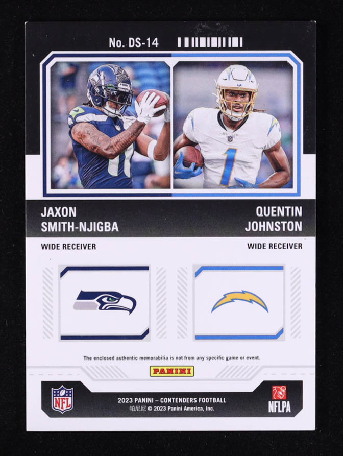 Jaxon Smith-Njigba / Quentin Johnston 2023 Panini Contenders Rookie Ticket Dual Swatches #14 RC