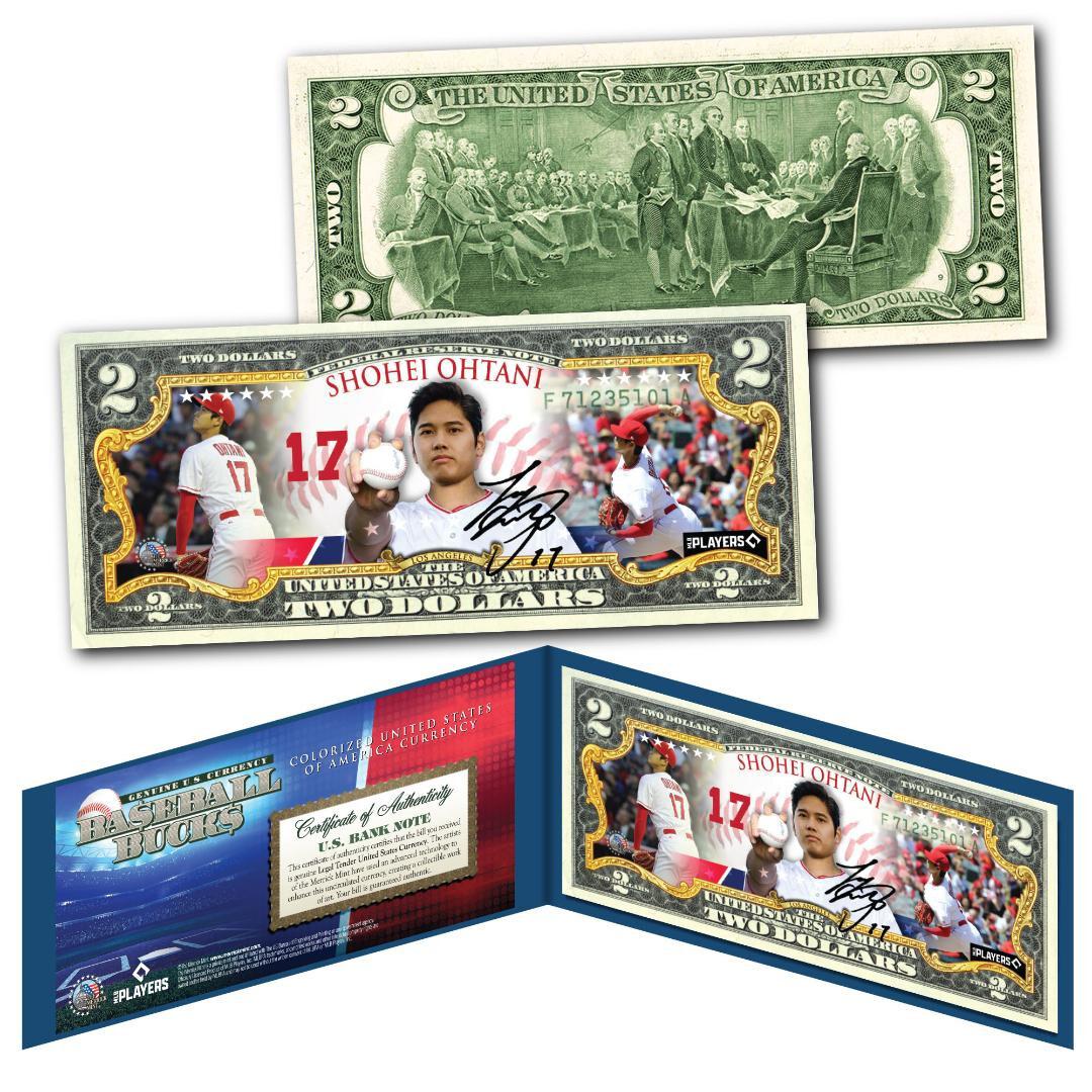 Shoehi Ohtani Angels Genuine Legal Tender Colorized U.S. $2.00 Two Dollar Bill Commemorative Edition Bank Note in Presentation Folder