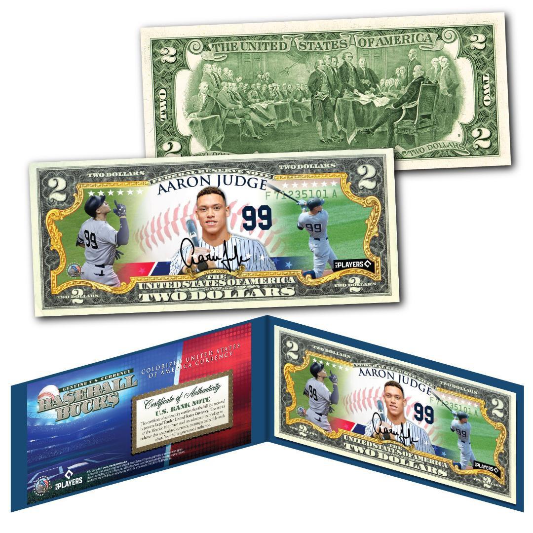 Aaron Judge Yankees Genuine Legal Tender Colorized U.S. $2.00 Two Dollar Bill Commemorative Edition Bank Note in Presentation Folder