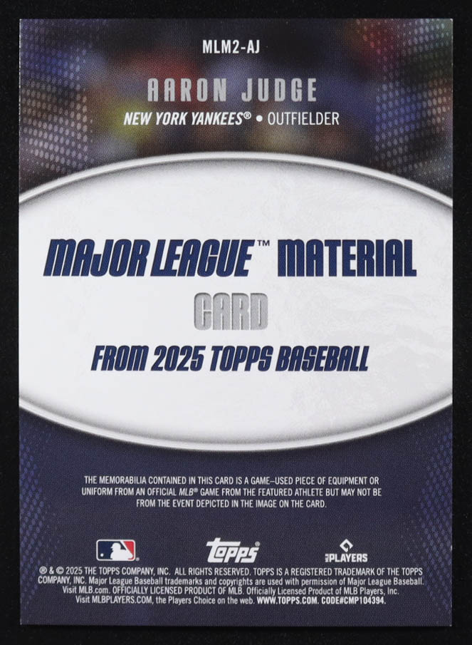 Aaron Judge 2025 Topps Update Major League Materials #MLM2AJ