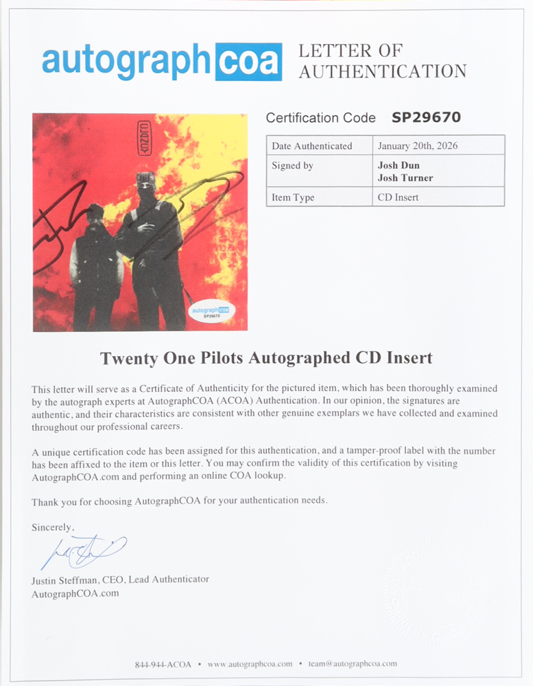 Tyler Joseph & Josh Dun Signed Custom Framed "Clancy" CD Album Insert Display with Disc (ACOA)
