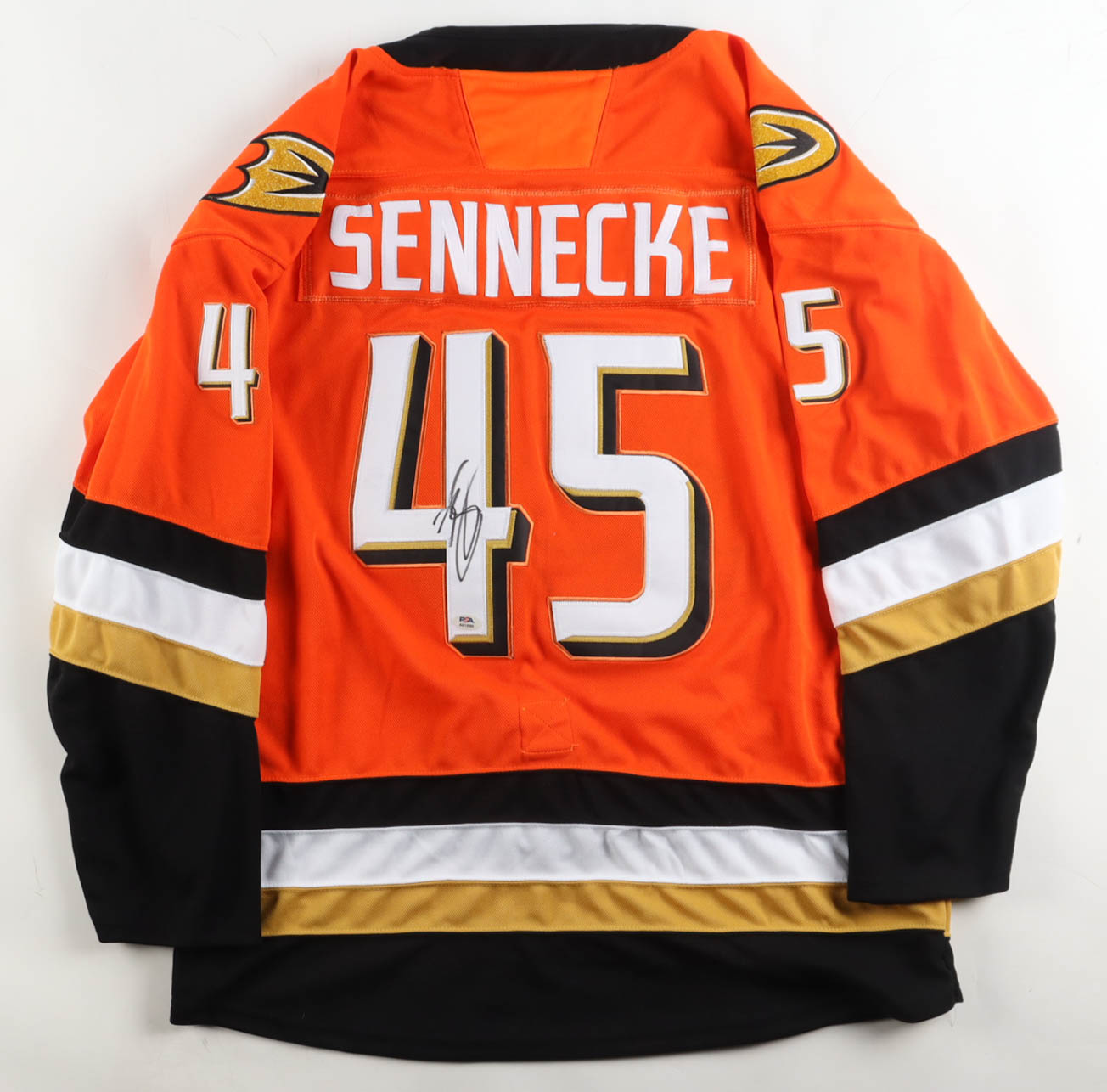 Custom jersey. Everything is sewn on, size XL. Hand-signed by Beckett Sennecke. Please note, there is a stain on the reverse number.