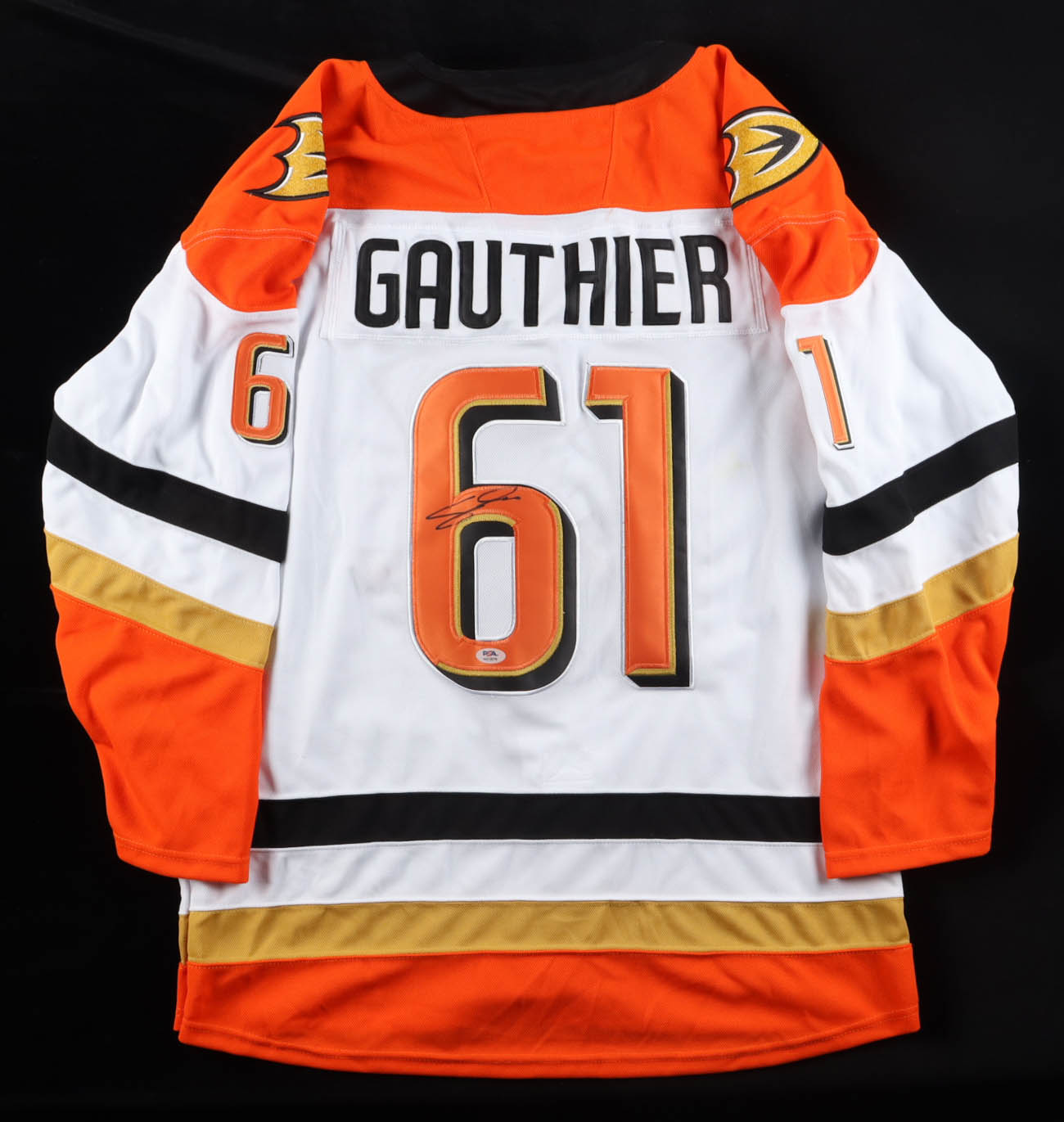 Custom jersey. Everything is sewn on, size XL. Hand-signed by Cutter Gauthier.