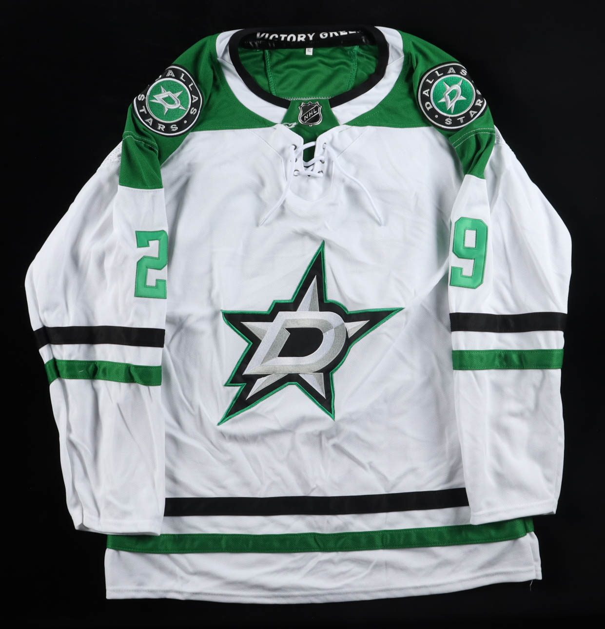 Custom jersey. Everything is sewn on, size XL. Hand-signed by Jake Oettinger.