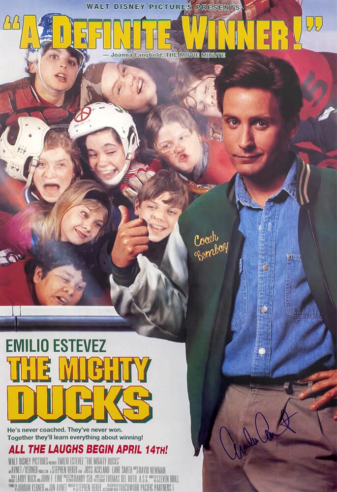 Emilio Estevez Signed "The Mighty Ducks" 27x40 Movie Poster (Schwartz)