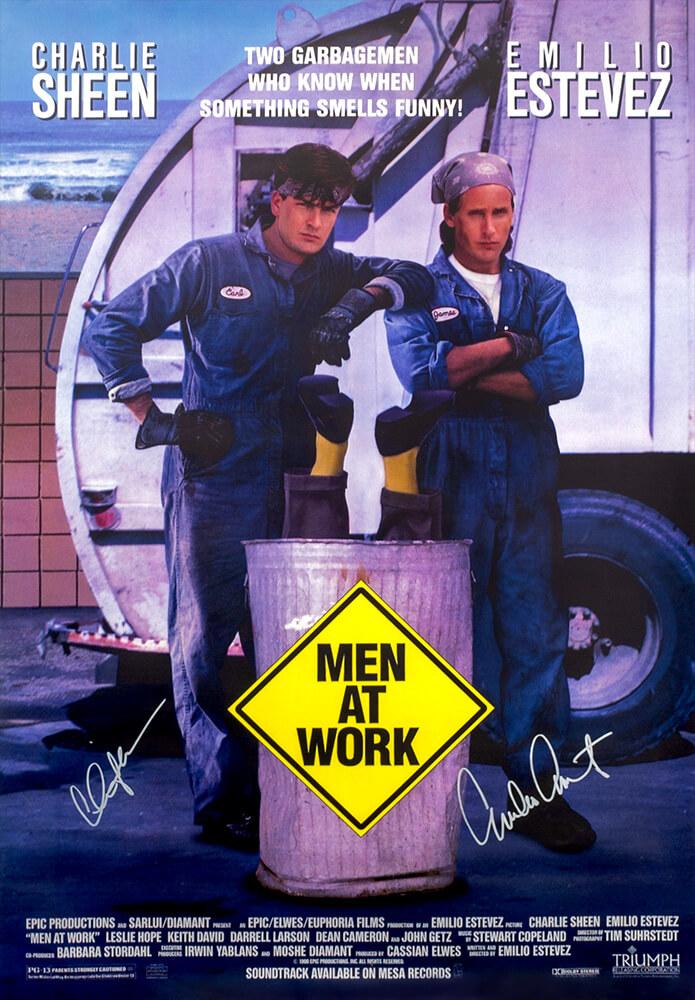 Charlie Sheen & Emilio Estevez Signed "Men At Work" 27x40 Movie Poster (Schwartz)