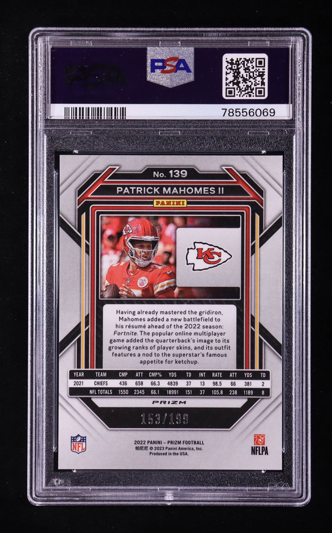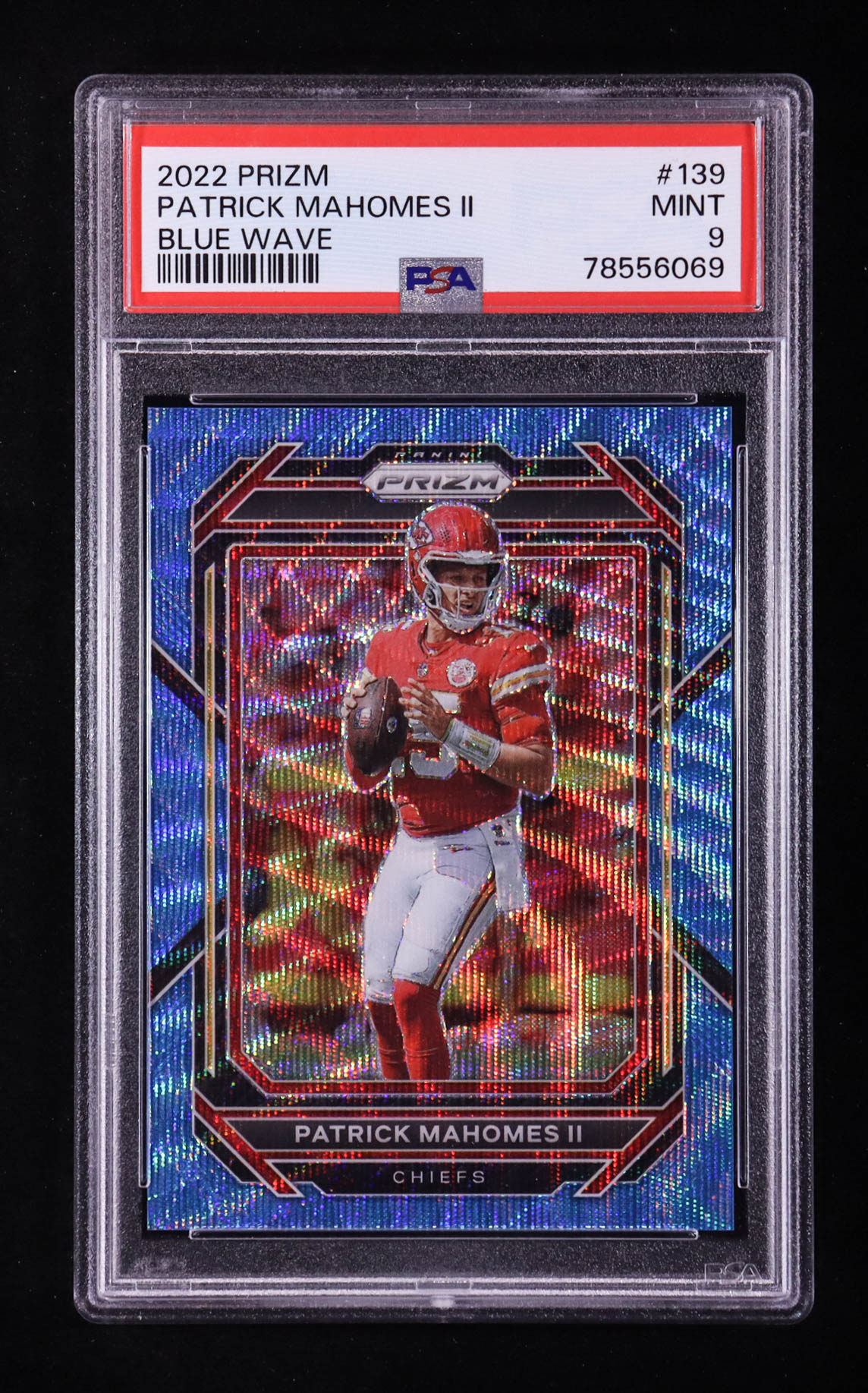 Patrick Mahomes II 2022 Panini Prizm Prizms Blue Wave #139 #153/199 (PSA 9)
