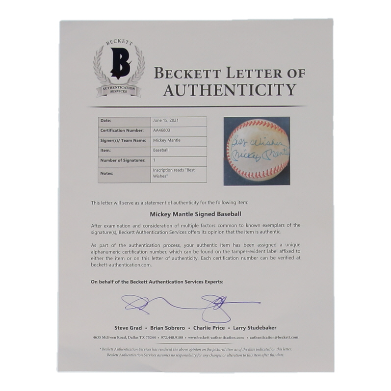 Mickey Mantle Signed OAL Baseball Inscribed "Best Wishes" (Beckett)