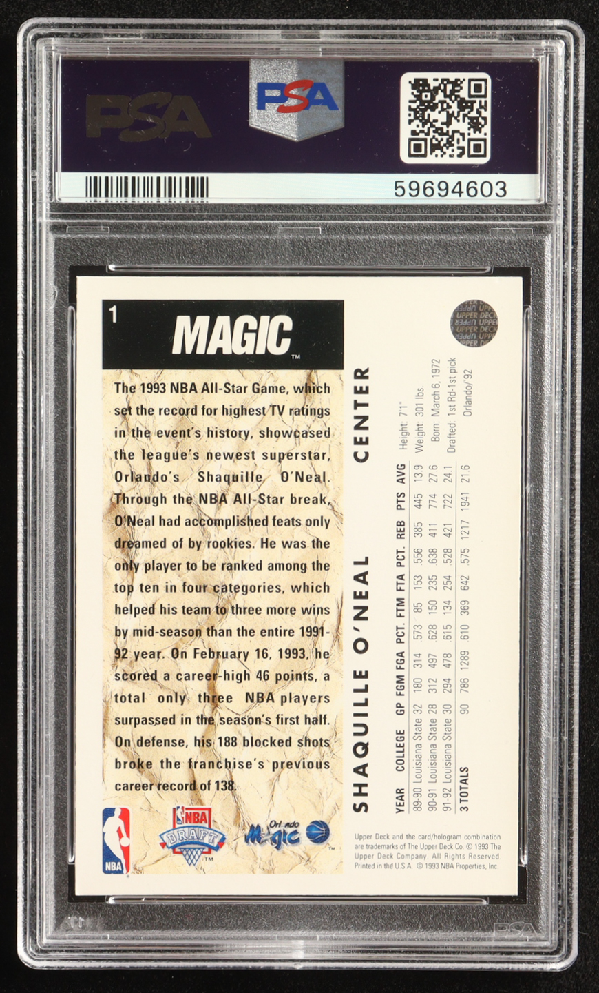 Shaquille O'Neal 1992-93 Upper Deck #1 SP RC/NBA First Draft Pick (PSA 6)