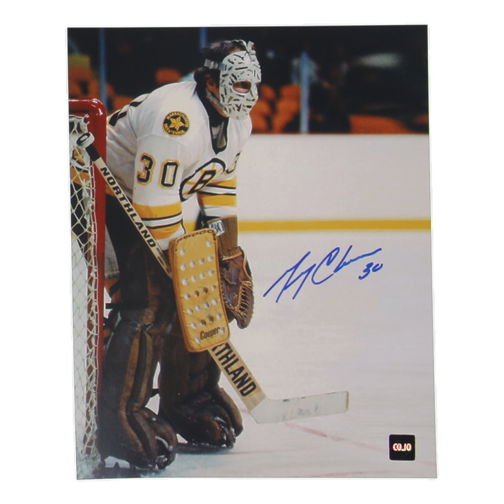 Photo measures 8" x 10" in size and has been hand-signed by Gerry Cheevers (Boston Bruins, HOF).