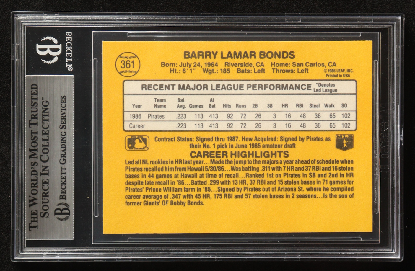 Barry Bonds 1987 Donruss #361 RC (BGS 9)