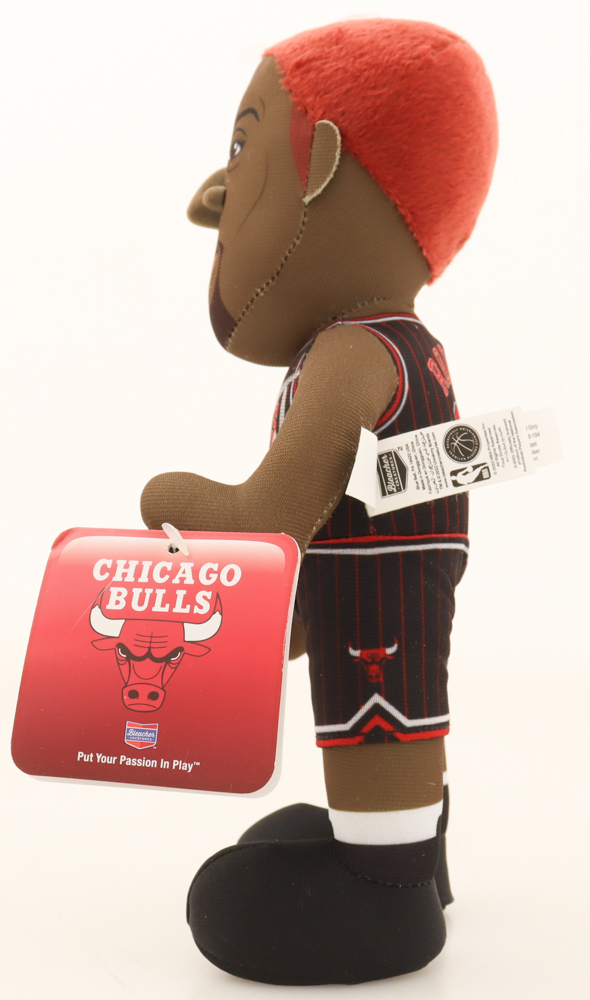 Plush figure measures approximately 10" tall and has been hand-signed by Dennis Rodman (Chicago Bulls, HOF).