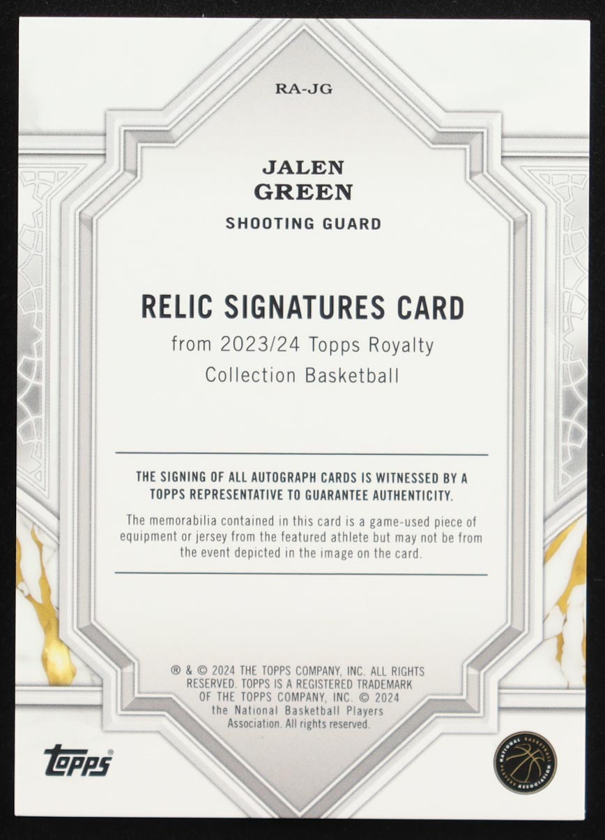 Jalen Green 2023-24 Topps Royalty Relic Signatures Blue #RAJG #08/25