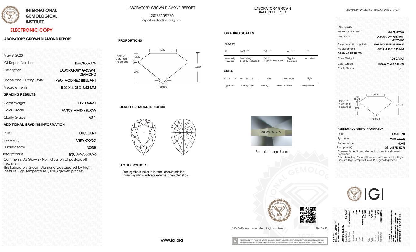 This piece includes paperwork from the International Gemological Institute (IGI) and Universal Gemological Laboratory (UGL).