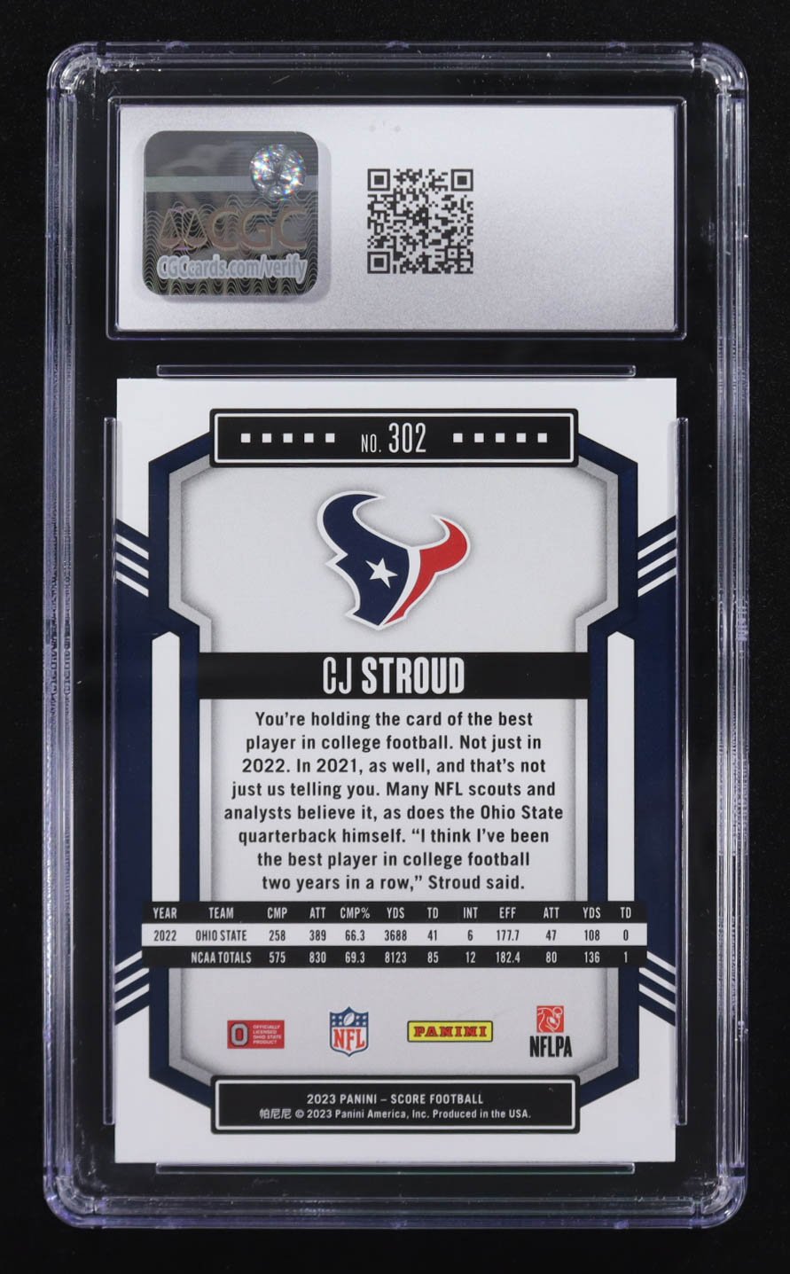 CJ Stroud 2023 Panini Score #302 RC (CGC 10)