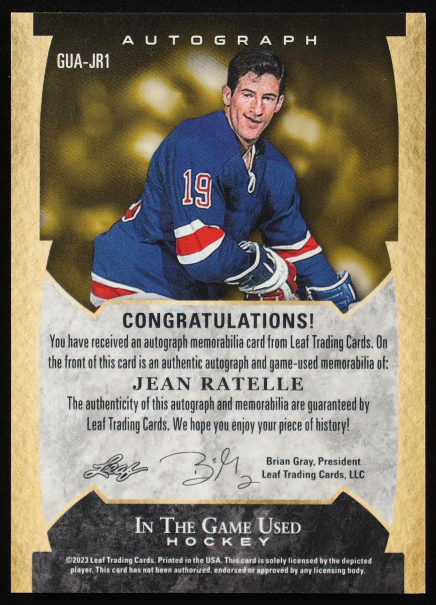 Jean Ratelle 2022-23 ITG Used In The Game Used Memorabilia Autographs Purple #GUAJR1 #19/40
