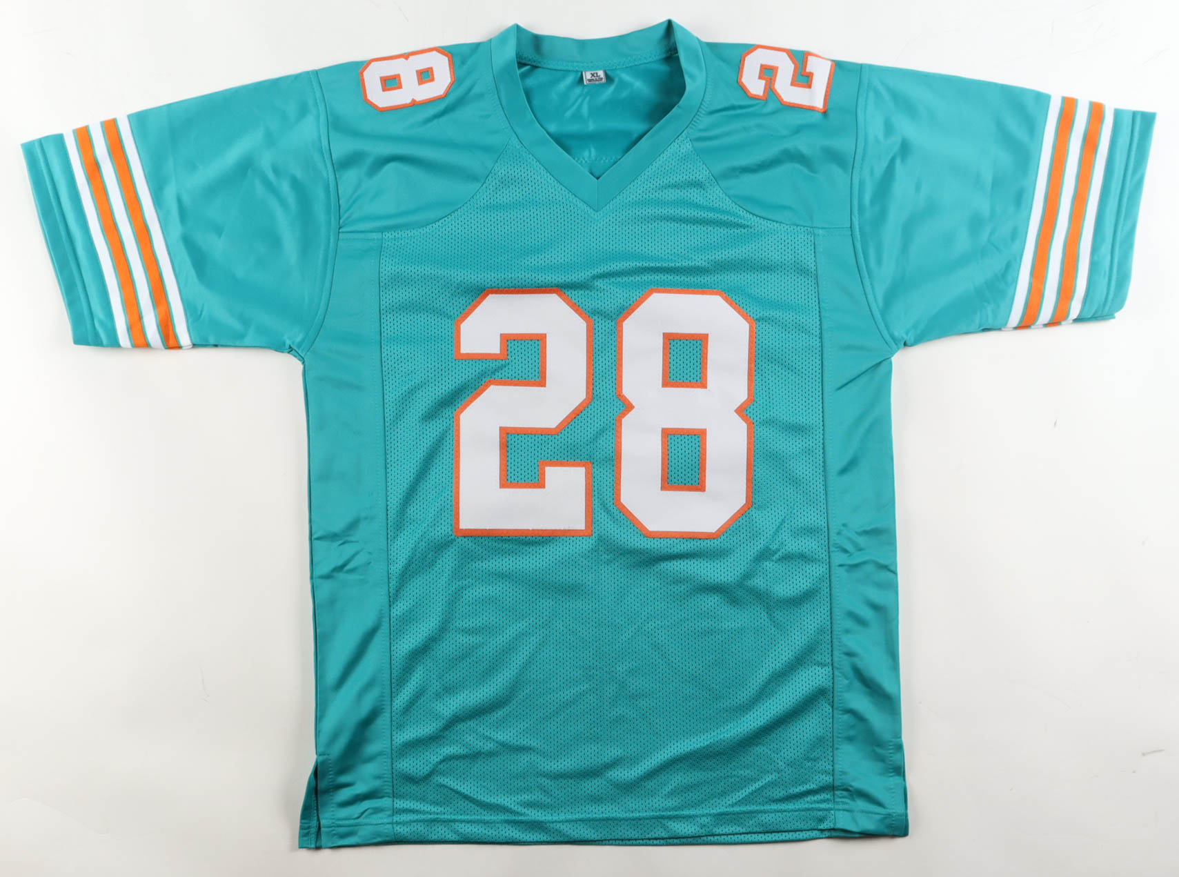 Custom jersey with everything sewn on, size XL. Has been hand-signed by De'Von Achane.